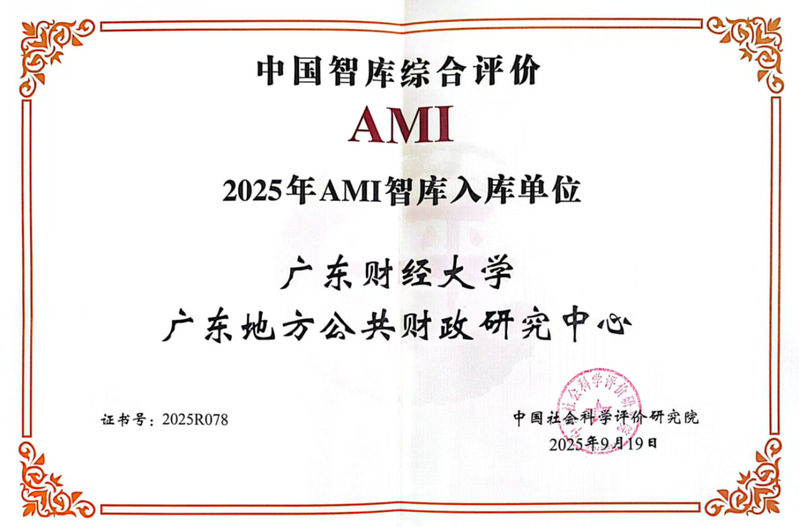近期,中国社会科学院中国社会科学评价研究院公布“中国智库综合评价研究项目(2025)”AMI智库入库名单,广东地方公共财政研究中心成功入选。这是本中心继2024年成功入选南京大学和光明日报联办的中国智库索引(CTTI)来源智库后取得的又一重要荣誉,标志着中心在地方公共财政研究领域的学术实力、社会贡献和在国内智库中的影响力获得国家级权威评价机构的高度认可。
